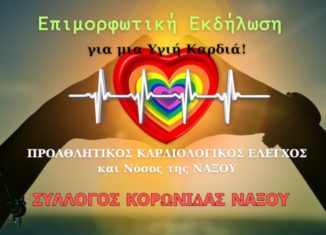 ΕΠΙΜΟΡΦΩΤΙΚΗ ΕΚΔΗΛΩΣΗ από το ΣΥΛΛΟΓΟ ΚΟΡΩΝΙΔΑΣ ΝΑΞΟΥ Ο Σύλλογος Κορωνίδας Νάξου διοργανώνει το Σάββατο 2 Μάρτη 2024 στις 7μμ, στο ΚΑΜΙΝΙ, επιμορφωτική ενημερωτική εκδήλωση για το κοινό, με θέμα: "ΠΡΟΑΘΛΗΤΙΚΟΣ ΚΑΡΔΙΟΛΟΓΙΚΟΣ ΕΛΕΓΧΟΣ ΓΙΑ ΤΗΝ ΕΓΚΑΙΡΗ ΔΙΑΓΝΩΣΗ ΠΑΘΗΣΕΩΝ ΠΟΥ ΕΙΝΑΙ ΥΠΕΥΘΥΝΕΣ ΓΙΑ ΤΟΥΣ ΑΙΦΝΙΔΙΟΥΣ ΘΑΝΑΤΟΥΣ ΤΩΝ ΑΘΛΗΤΩΝ, ΟΠΩΣ ΕΙΝΑΙ Η ΑΡΡΥΘΜΙΟΓΟΝΟΣ ΜΥΟΚΑΡΔΙΟΠΑΘΕΙΑ ΓΝΩΣΤΗ ΣΑΝ ΝΟΣΟΣ ΝΑΞΟΥ". Σκοπός της εκδήλωσης είναι η ευαισθητοποίηση από νεαρή ηλικία και η σημασία του "καλύτερα να προλαβαίνονται οι καρδιαγγειακές παθήσεις, παρά να θεραπεύονται". Επίσης η εκδήλωση θα είναι και ένας