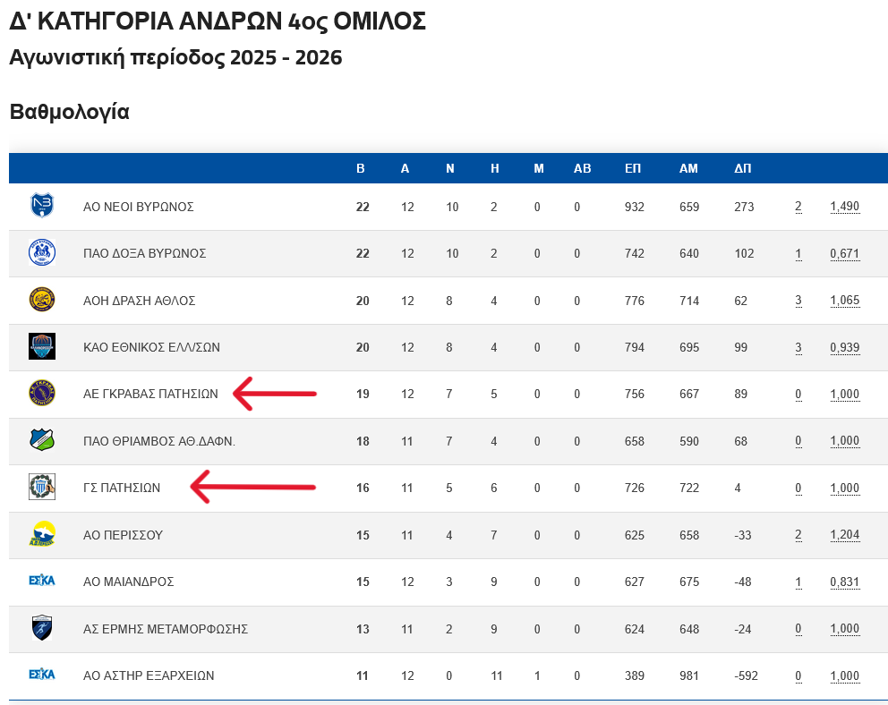 ΓΣ ΠΑΤΗΣΙΩΝ, ΑΕ ΓΚΡΑΒΑΣ, ΝΙΚΗ ΑΘΗΝΩΝ, ΑΠΣ ΟΙΩΝΟΣ, ΠΗΓΑΣΟΣ ΚΥΨΕΛΗΣ.