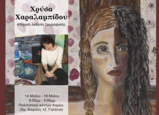 Χρώματα, πολλά χρώματα, Χρώματα ματιών, Χρώματα ψυχής! Το Σάββατο 14/5/2022, εγκαινιάσθηκε η ατομική έκθεση ζωγραφικής της Γαλατσιώτισας Χρυσάνθης (Χρύσας) Χαραλαμπίδου, στο ισόγειο στο Πολιτιστικό Κέντρο του Δήμου Γαλατσίου "ΚΑΜΙΝΙ". Πίνακες ζωγραφικής γεμάτοι με συναίσθημα, χρώματα, ψυχή και έντονο προβληματισμό από τη ταλαντούχα Χρυσάνθη! Πολύς κόσμος παρέμεινε στο πολύ όμορφο χώρο στο ΚΑΜΙΝΙ, για αρκετές ώρες, "ρουφώντας" τα μηνύματα που ξεπηδούσαν από τους πίνακες της ζωγράφου, μιας πολυτάλαντης κυρίας και φίλης. Παρέστησαν και προλόγισαν το έργο της Χρύσας Χαραλαμπίδου, η Νιόβη Αλειφτήρα Σταυροπούλου, Ιστορικός Τέχνης Universite