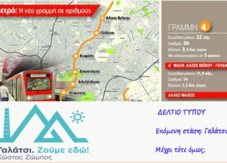 Η δημοτική παράταξη «Γαλάτσι. Ζούμε εδώ!», με αφορμή την παρουσίαση της Αττικό Μετρό για το έργο της ΓΡΑΜΜΗΣ 4, μας έστειλε το παρακάτω δελτίο τύπου, προτείνοντας θέματα που πρέπει άμεσα να αντιμετωπισθούν ή και να ληφθούν σοβαρά υπόψη. . ΔΕΛΤΙΟ ΤΥΠΟΥ Επόμενη στάση: Γαλάτσι. Μέχρι τότε όμως; Η νέα γραμμή 4 του Μετρό είναι ένα σπουδαίο δημόσιο έργο. Ένα έργο με 3 στάσεις στην πόλη μας που θα εξυπηρετεί καθημερινά χιλιάδες συμπολίτες μας. Στο διάστημα της κατασκευής του όμως, πρέπει οι ζωές μας να